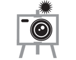 The grey line denotes the canvas while the graphics layered in black elicit a camera, thus drawing the relation of the canvas as one that captures light.